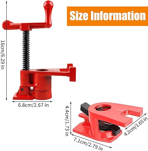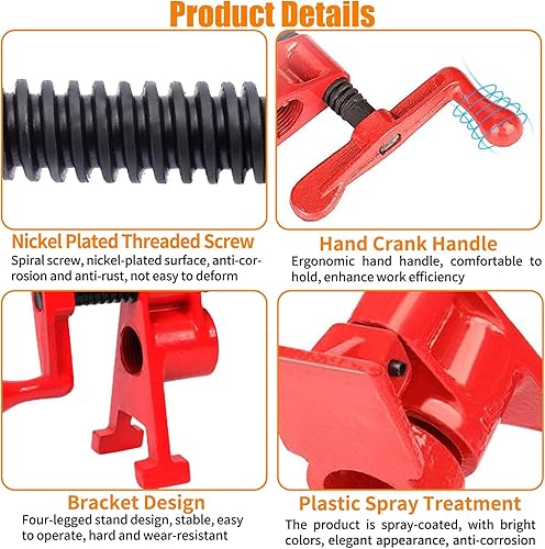 Set Morsetti Legno Lavorazione per Tubo 3/4, Tubi Legno Morsa a Vite, Dispositivo Fissaggio Regolabile, Morsetto Sgancio Rapido per Tubi Acqua, Tubi Filettato, Clamp Wood Heavy Duty in Ghisa(Rosso)