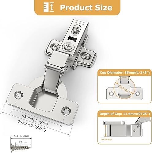 Furniware 10 pezzi Battuta Esterna Cerniere per mobiletti,distanza tra i fori 45 mm con molla idraulica Cerniere per mobile cucina Perfect softclose, per mobile cucina, anta armadio, armadio