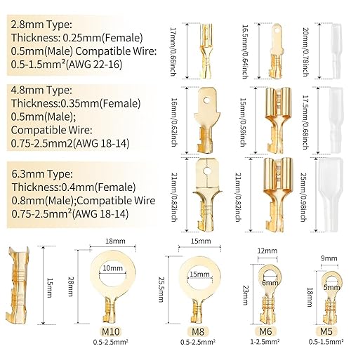 shengbowi 2.8/4.8/6.3mm Female Male Spade Crimp Connectors Electrical Lugs Terminal Insulating Wire Quick Splice Assortment Kit Wound Plug Crimping Spring Insert Wire Cold Pressing Wiring Cable