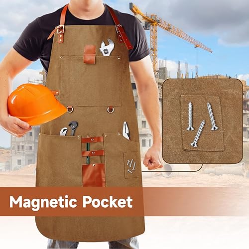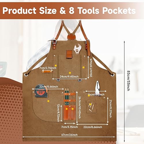 Grembiule da saldatore professionale in pelle da uomo con 8 tasche, grembiule da cucina, grembiule da barbecue, per uomini e donne, cinghie incrociate regolabili per parrucchiere