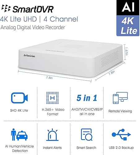 4K Lite DVR 4 Canali Video Recorder con Rilevamento di Persone/Veicoli Sorveglianza Videoregistratore CCTV CVBS/AHD/TVI/CVI/IP Sicurezza di Sistema Avviso e-mail con Immagini senza HDD