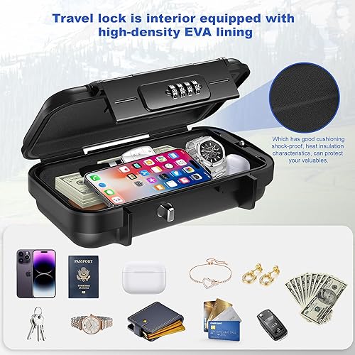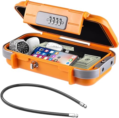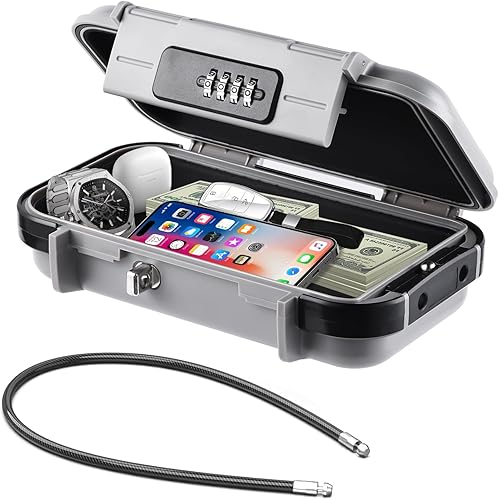 Cassetta di sicurezza portatile con codice, impermeabile e antifurto, cassaforte da viaggio, con combinazione di sicurezza con cavo metallico rimovibile, per spiaggia, auto, ufficio, vacanze