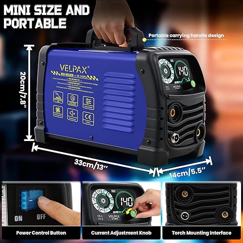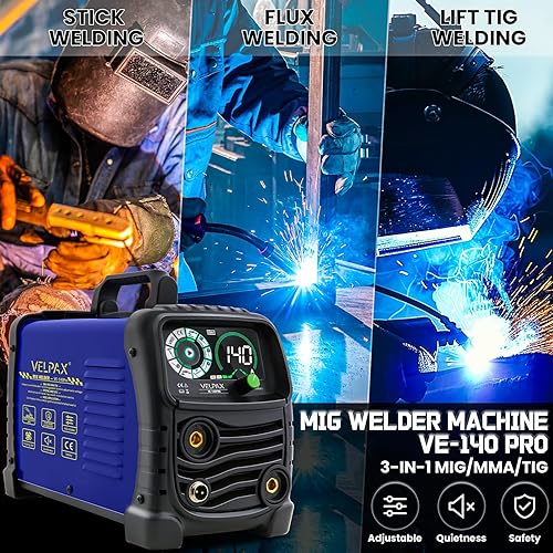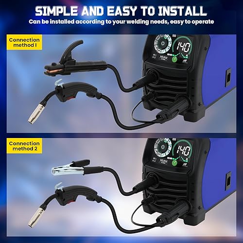 140A Saldatrice A Filo Continuo Senza Gas, 3 in 1 MIG/ARC/Lift TIG IGBT Inverter Saldatore con Smart Digital LED Dispaly di filo animato 0,8 mm per principianti e saldatori professionisti