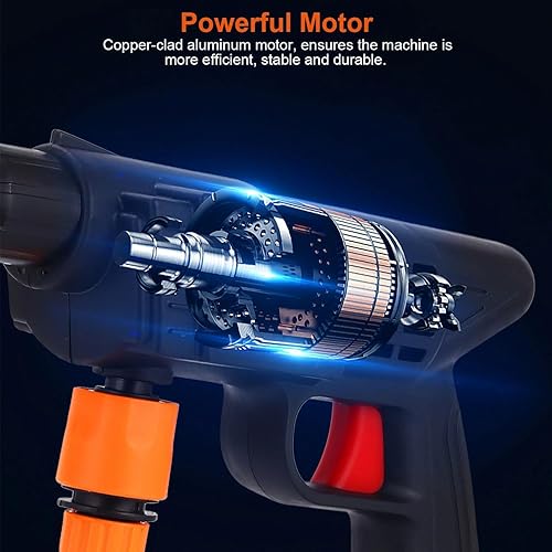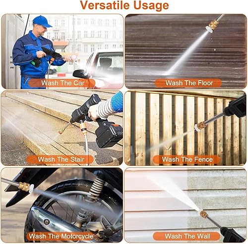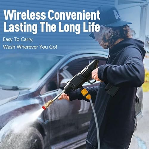 Idropulitrice Portatile, 90 Bar Idropulitrice Pulitore Portatile Senza Fili con Tubo da 5m, Regolazione Intelligente Della Tensione, Lunga Durata, per Auto, Patii, Finestre, Prati, Animali Domestici
