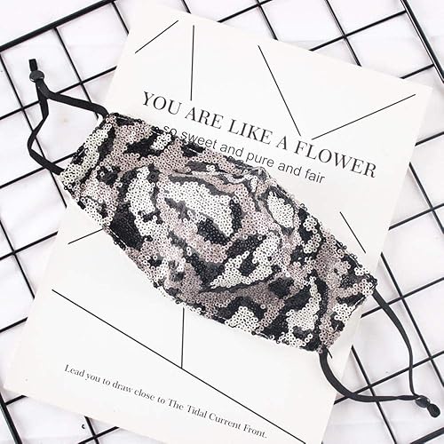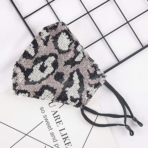 copribocca con paillettes, anti polvere, con passanti regolabili per le orecchie, con clip per le donne, con glitter scintillanti, copertura decorativa in tessuto lavabile, riutilizzabile