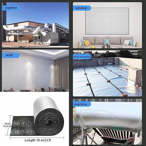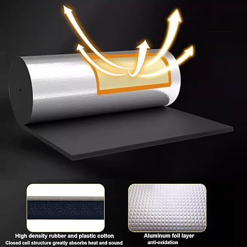 Spugna Adesivo Stuoia Antirombo Antivibrante Schiuma Fonoassorbente Autoadesiva Tappeto Isolante,Isolante Termico Riflettente,Cotone Isolante Antigelo,per Porta Tetto (1x1m/3.3x3.3ft,10mm thick)