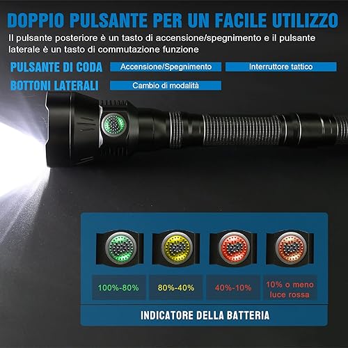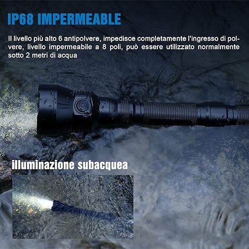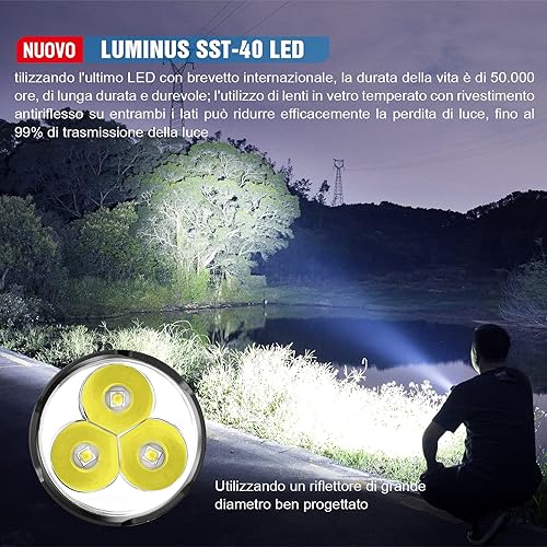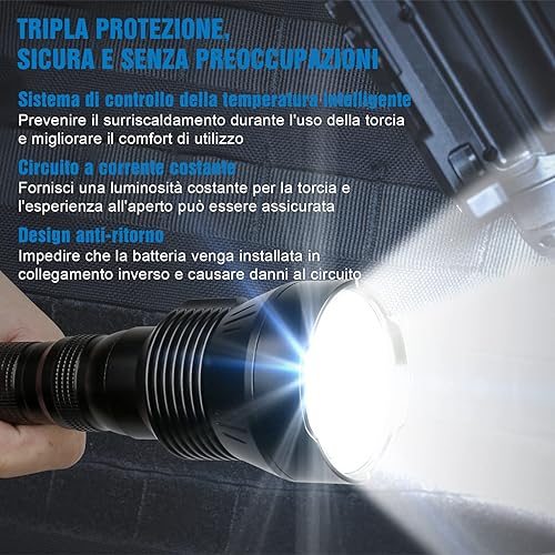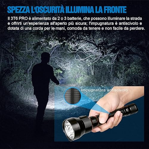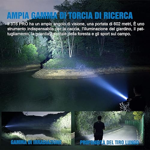 Torcia Da Caccia 5200 Lumen, TrustFire 3T6PRO Torcia LED Potente Professionale, Tattica Militare Torcia Elettrica, Ricaricabile USB, per Caccia Soccorso Emergenza Campeggio Trekking