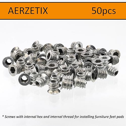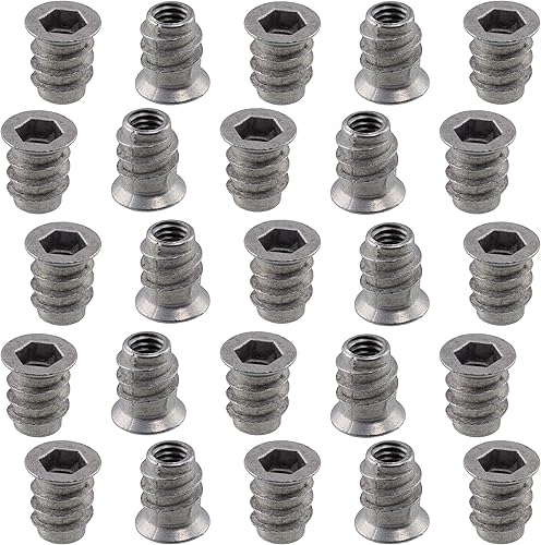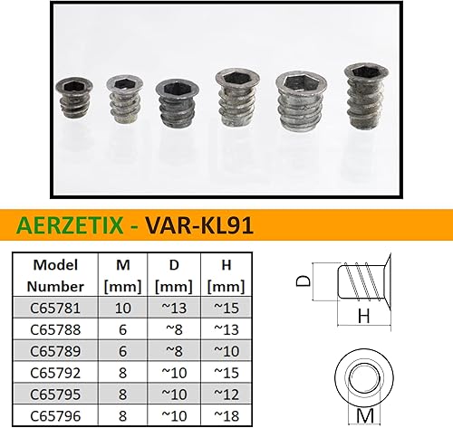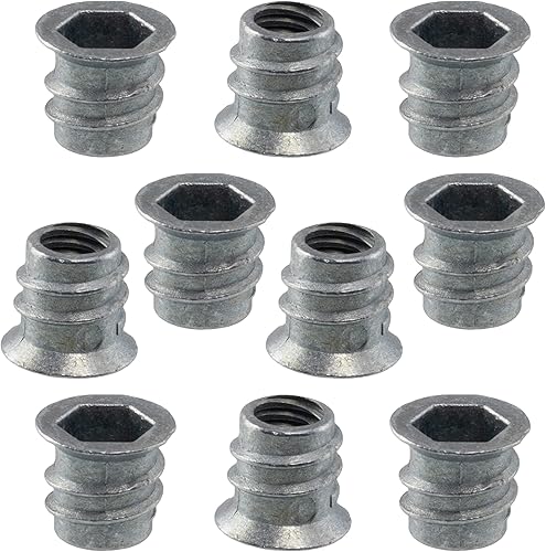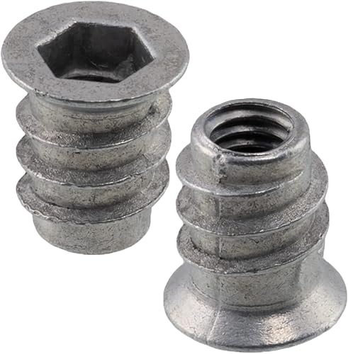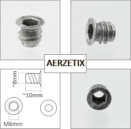 C65789 - Set di 50 dadi inserti esagonale M6x8mm cavi - lunghezza 10mm - bussola per avvitare - raccordo per montaggio mobili - armadio cassettiera - in acciaio
