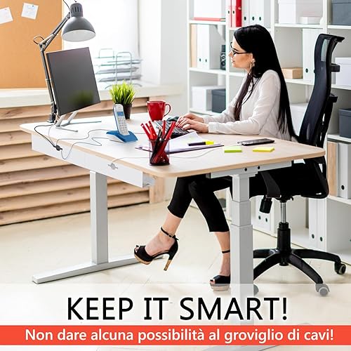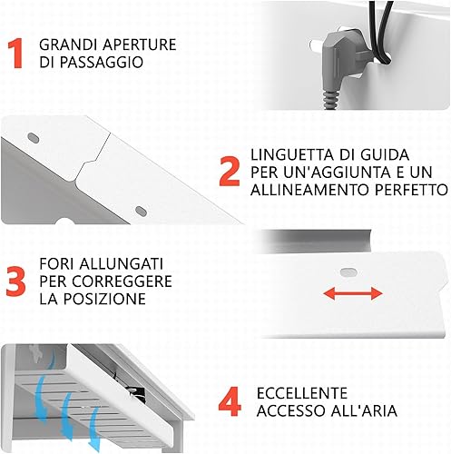 iVengo® XL raccogli cavi scrivania testato TÜV [2x50 cm] per una ideale cable management scrivania - spaziosa nascondi cavi scrivania [set di 2] - robusta e intelligente porta cavi scrivania - bianco