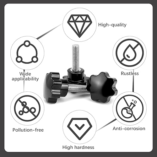 15 Pezzi Manopola a Vite M8×25mm,Viti a Testa Stella in lega di zinco, Vite a Manopole a Forma di Stella, Viti a farfalla per Macchine, Mobili ed Elettronica, Nere