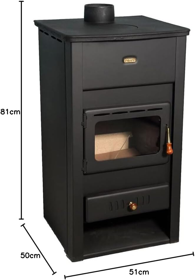 Prity Stufa a legna, 10 kW, ghisa, multi combustibile, nero grafite, riscaldamento
