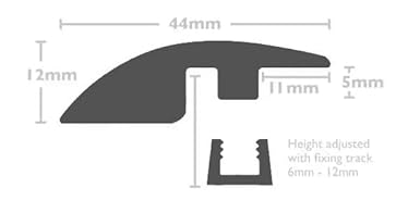 Profilo rampa in MDF, striscia di soglia, lunghezza 1 m, larghezza 44 mm, altezza regolabile da 6 a 12 mm, striscia di transizione per pavimenti in laminato e legno, facile da installare