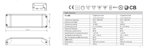 ALIMENTATORE TRASFORMATORE PER LED ACTEC CON MORSETTIERA CV MODE 24 V 75 WATT TENSIONE COSTANTE
