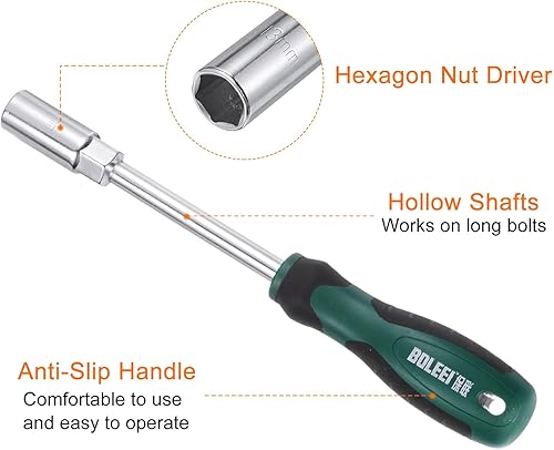 2pz Chiave a Dado Metrico 13mm Cr-V con Asta Cava, Cacciavite a Bussola Esagonale con Punta Non Magnetica e Manico Antiscivolo per Riparazioni Automobilistiche