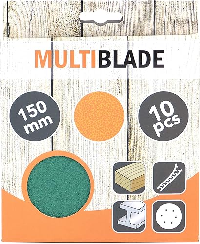 Multiblade - Dischi abrasivi professionali, 150 mm, 10 pezzi, grana 40, 6 fori, per legno e metallo, qualità professionale, per levigatrice orbitale e rotativa