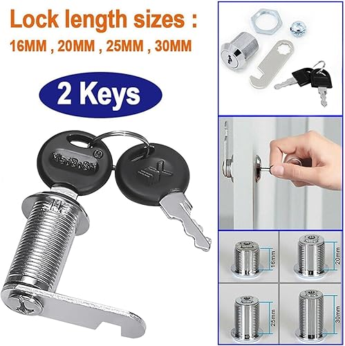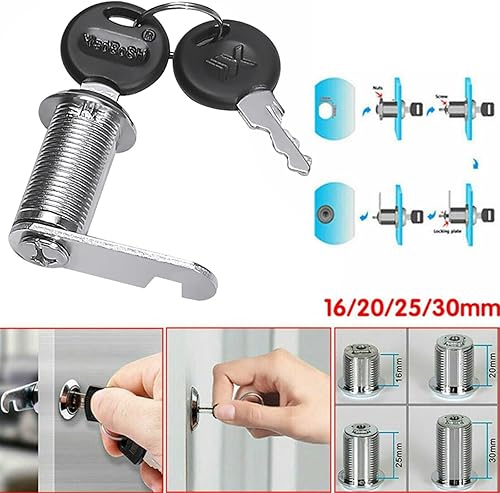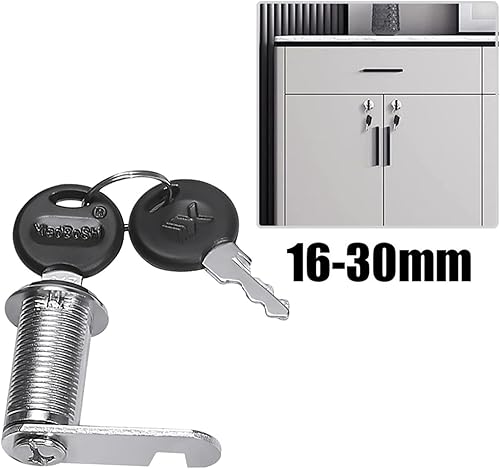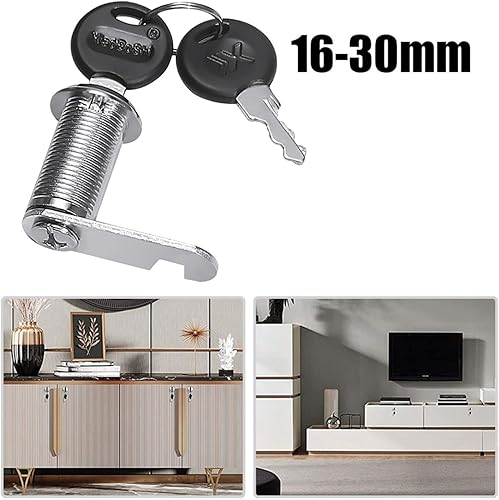Serratura per armadio, cassetta delle lettere, tamburo, cassetto, armadietto, armadietto, 16/20/25/30 mm, 2 chiavi, per porte in legno, metallo e vetro (16 mm)