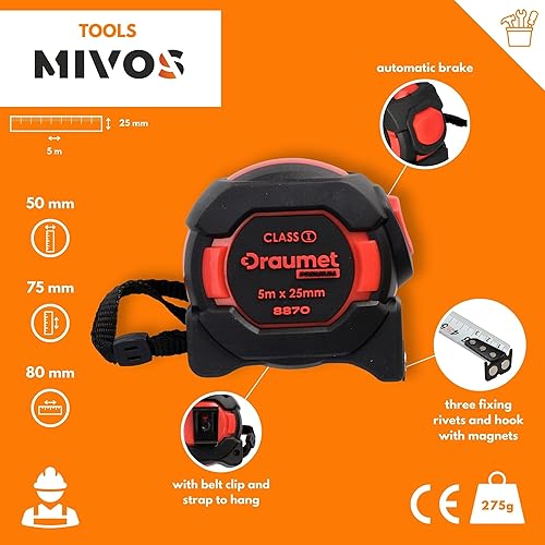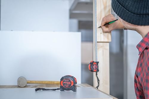 Metro a nastro stampato su entrambi i lati - Misura del nastro con gancio magnetico e clip per cintura - Metro a nastro con alloggiamento ergonomico - Certificazione CE e MID - 8 m x 25 mm