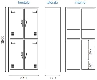 ARMADIETTI SPOGLIATOIO IN METALLO 85X180X42-4 ANTE SOVRAPPOSTE GRIGIO BLU ARANCIONE GIALLO VERDE - Verde