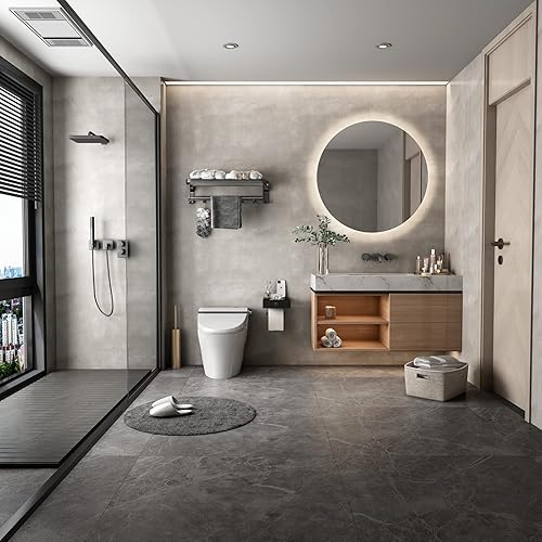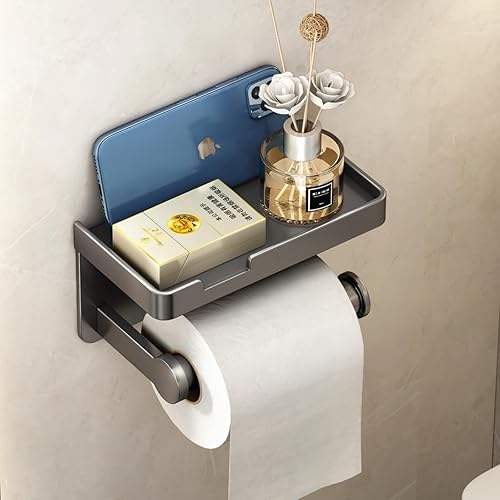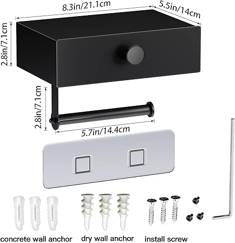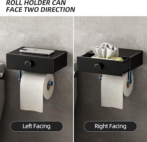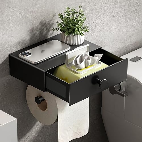 VOLDRA Porta Carta Igienica Senza Foratura Con Scatola per Salviette Umidificate, Rotolo Con Cassetto, Supporto per WC e Bagno (Nero Opaco)