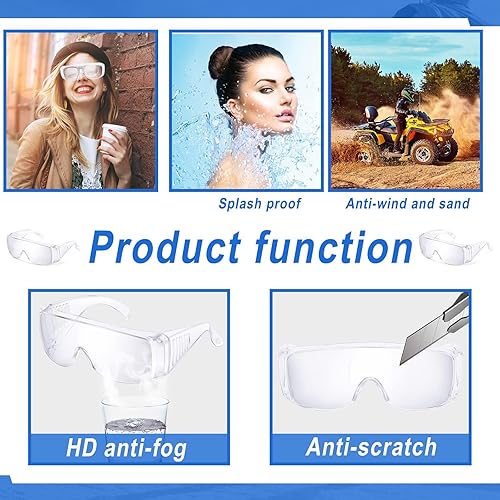 Occhiali Protettivi da Lavoro,Anti-Appannamento e Anti-Graffio Occhiali di Sicurezza Trasparenti per Laboratorio Chimica Esterno e Lavoro Protezione Anti-Urto Antipolvere e Anti-Spruzzo