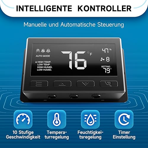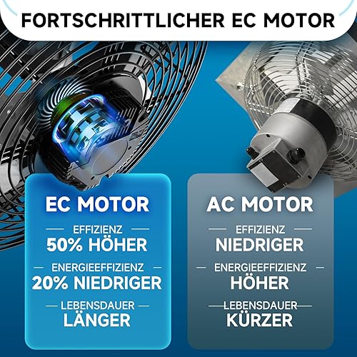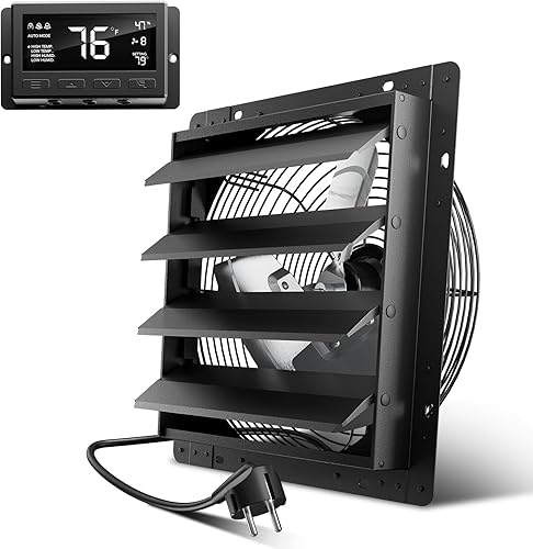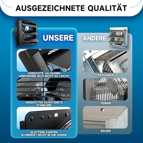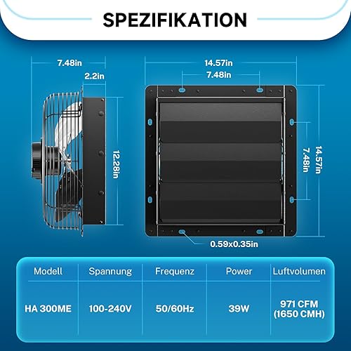 Hon&Guan Ventilatore di scarico industriale, 350 mm, motore ECC, super volume d'aria 2200 m³/h, ventilatore da parete con sensore di umidità, sensore di temperatura, alloggiamento interamente in