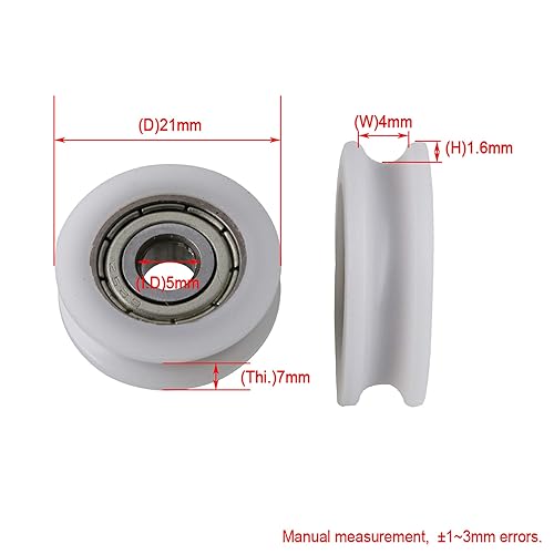 BQLZR 21x5x7mm 625ZZ U-tipo di guida a sfere con cuscinetti a sfere Puleggia Ruote 67KG portanti per porta finestra Stampante per armadietto Confezione da 4