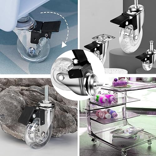 4 ruote girevoli, con perni filettati M8 x 15 e cuscinetti a sfera, con freno, per mobili, tavolo, carrello, borsa per attrezzi per trasporto industriale e logistica