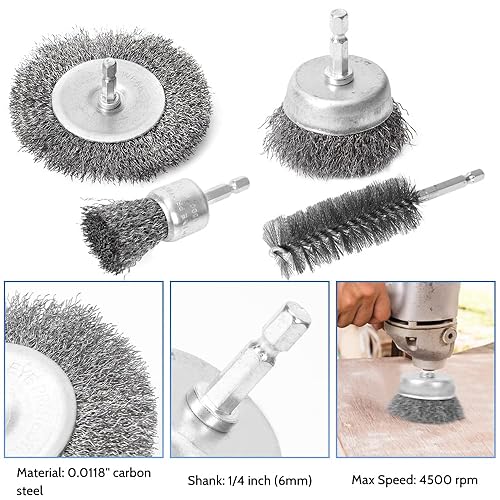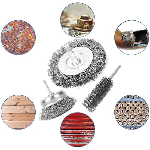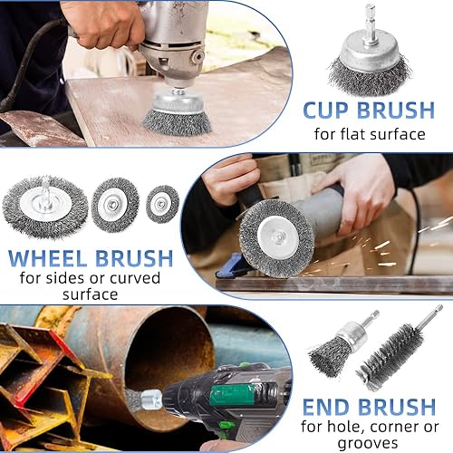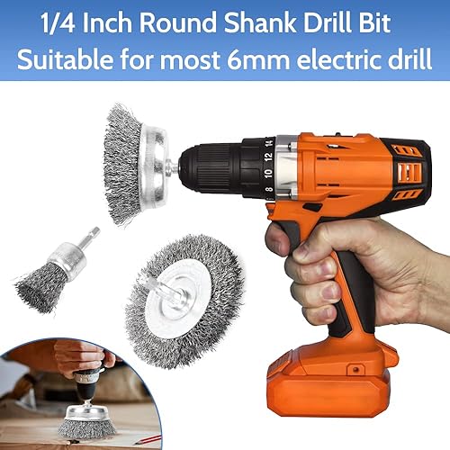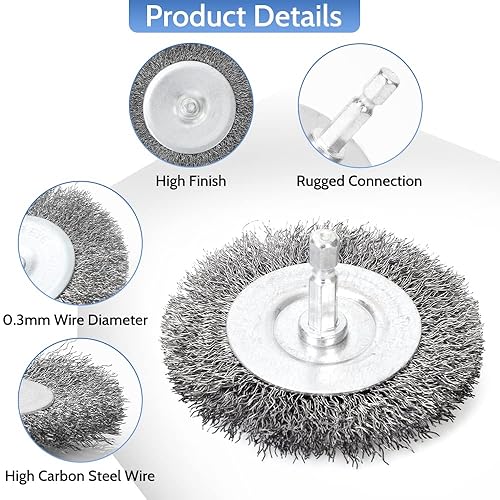 6 Pezzi Spazzole Metalliche, Spazzola Acciaio per Trapano con 1/4 Pollice Gambo Filo Acciaio per Rimozione Ruggine, Corrosione, Vernice