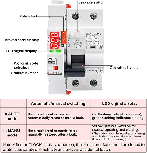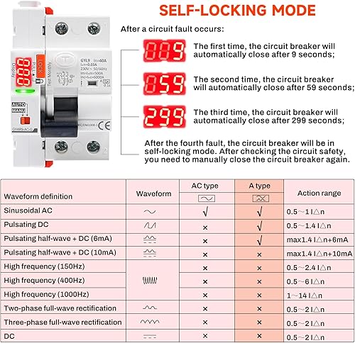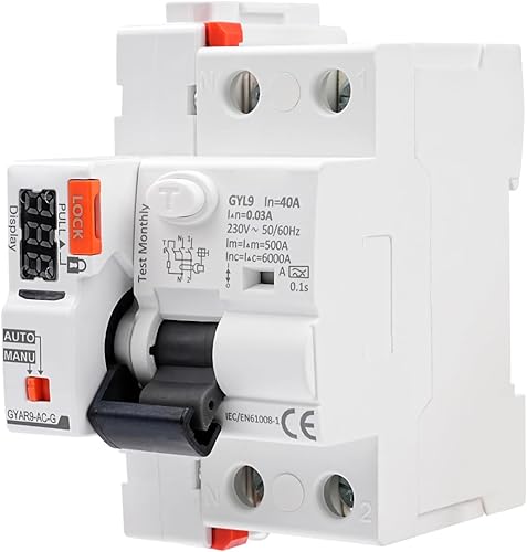 Interruttore Differenziale a Riarmo Automatico con display a LED,2P 40A AC230V Salvavita con Riarmo Automatico RCCB Interruttore di Protezione a Bassa Tensione(Type AC)