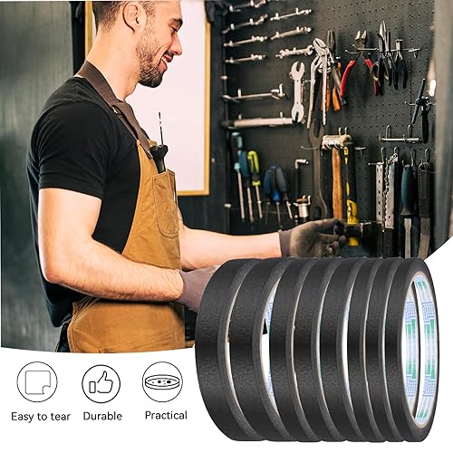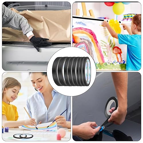 Fine Line, 8 rotoli di nastro per mascheratura, nastro adesivo nero, nastro per lavori di bricolage, etichette (larghezza 3/6,5/13 mm)
