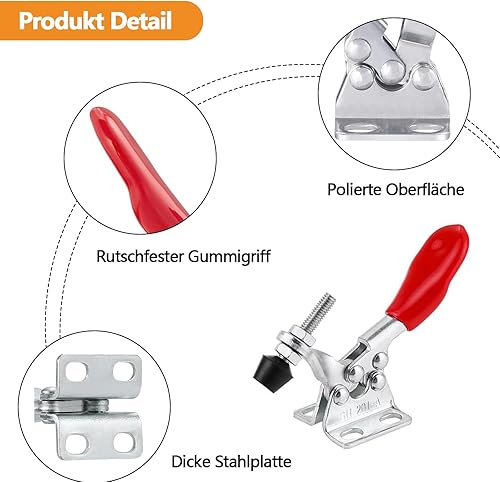4 Pezzi Morsetto a Ginocchiera, Morsetto a Ginocchiera Orizzontale Chiusura a Tensione Morsetto a Ginocchiera Orizzontale per Saldatura/Macchinari/Carpenteria