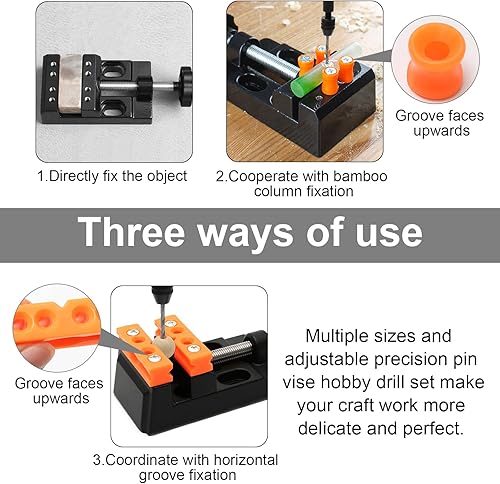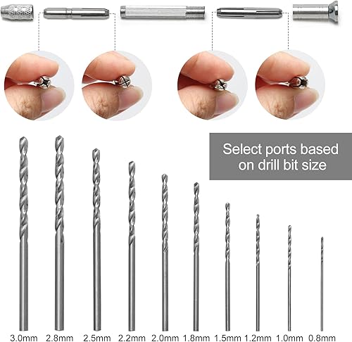 Mini Set Punte a Mano, Micro Punte a Mano con 10 Pezzi Punte Elicoidali da 0,8-3,0mm e Morsa da Banco Piccola, Mini Trapano a Mano Metalli per Foratura Modellismo Fai-da-te e Gioielleria