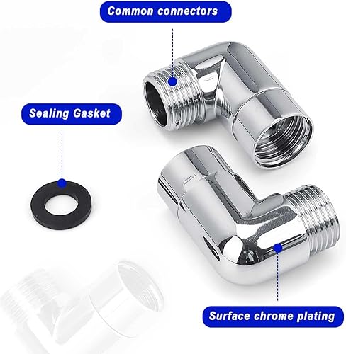 90 Gradi Doccetta Adattatore, 2 Pezzi Gomito per Doccetta, Adattatore per Doccetta Raccordo, Adattatore Angolo per Braccio Soffione Doccia, per Soffioni Doccia, Rubinetti e Tubi Dell'acqua