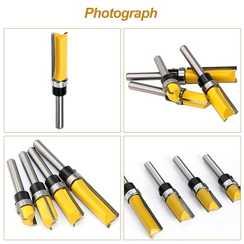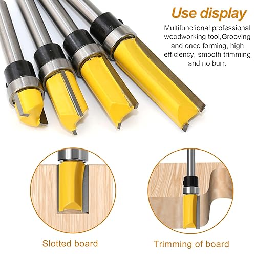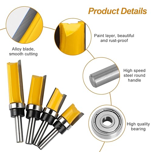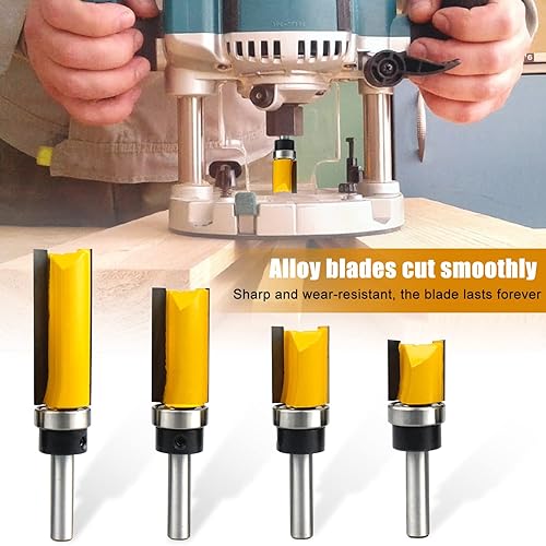 4 pezzi Set di Punte per Fresatura Legno Gambo 8mm, Fresa a Copiare con Codolo da 8 mm, Frese per Legno, Set Frese con Cuscinetto per Spianare Legno Professionali
