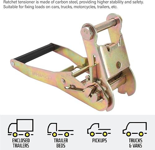 Tenditore a Cricchetto 2 Pollici 2500 Kg di Serraggio Cinghia a Cricchetto in Acciaio Carbone Adatto per Fissare Carichi su Auto, Camion, Motociclette, Rimorchi