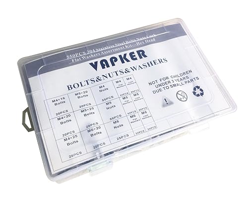 Kit assortito di viti, bulloni, dadi, guarnizioni piatte e rondelle, 550 pezzi, in acciaio inossidabile, a testa piatta esagonale M4, M5 e M6