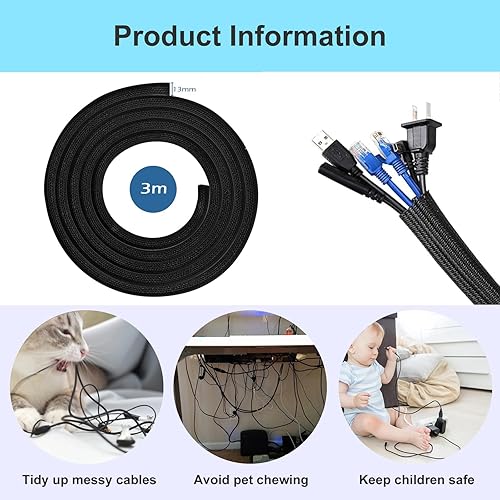 Protezione per Cavi di Cani e Gatti,3m*10mm Spirale Cavi Elettrici,Tagliabile Nascondi Cable Guaina,Proteggi Cavo Animali,per TV Computer