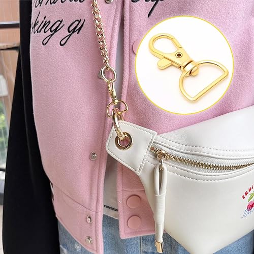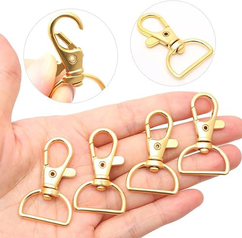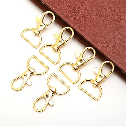 40 portachiavi in metallo dorato, chiusura a moschettone, girevole a 360°, anelli a D, gancio portachiavi con anello a D, per borse, portachiavi, portachiavi, catene per cuccioli