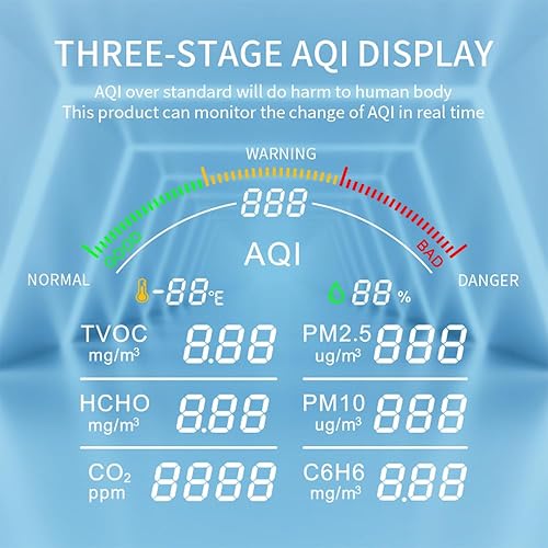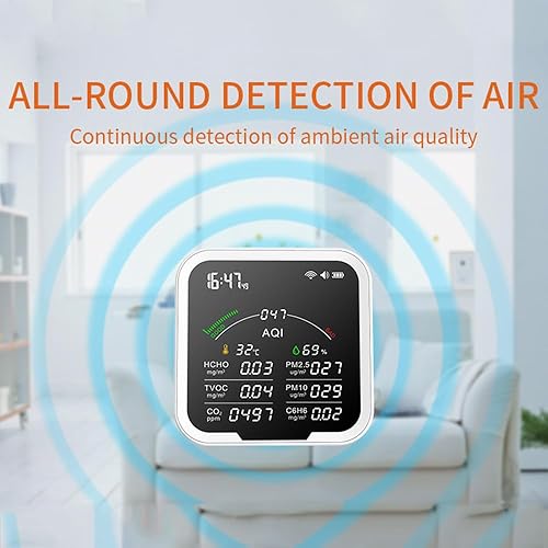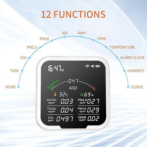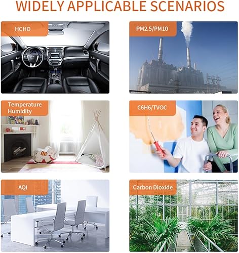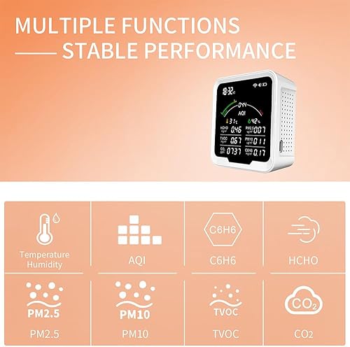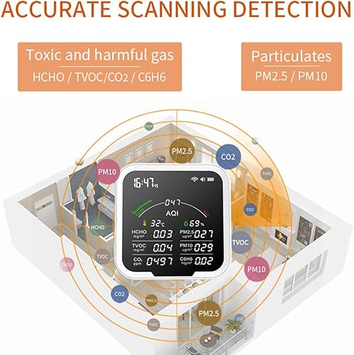 Misuratore di qualità dell'aria portatile HCHO/TVOC/CO2/PM2,5/PM10/AQI/C6H6, tester di temperatura e di influenza dell'aria da 4,8 pollici, rilevatore di anidride carbonica a grande schermo con