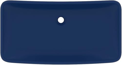 Lavabo Lusso Rettangolare Blu Scuro Opaco 71x38 cm in Ceramica-Lavandino di Appoggio Design Moderno,Lavabo ad incasso in ceramica,Rettangolare,Finitura Bianco Lucido,Lavamani senza Piletta,Baci