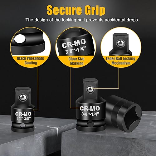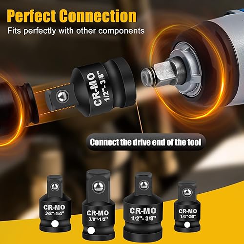 4PCS Adattatori Bussola, ELEPRUC 1/4' & 1/2' a 3/8', 3/8' a 1/4' & 1/2' Adattatori Chiave Cricchetto, CR-MO Riduttori per Chiavi a Cricchetto o Dinamometrica