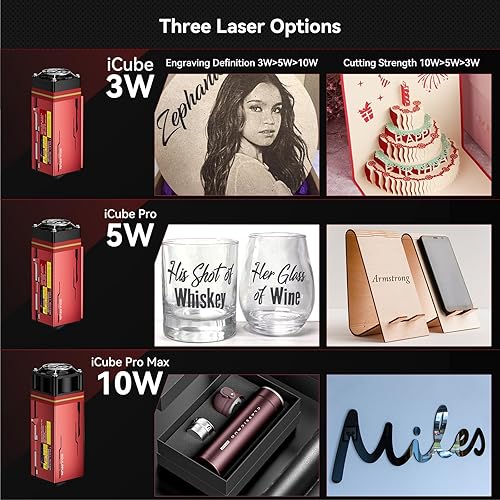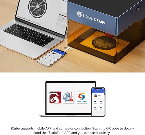 SCULPFUN iCube - Macchina per incisione laser 3 W, 0,02 mm, con filtro antifumo, incisione laser portatile, per legno, carta, pelle, 10000 mm/min, alta velocità