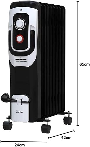 Güde Radiatore ad olio OR 2000-9 (220-240 V, 2000 W, 3 livelli di riscaldamento (800/1200/2000 W), 9 nervature, termostato continuo, protezione contro il ribaltamento e il surriscaldamento, ruote per