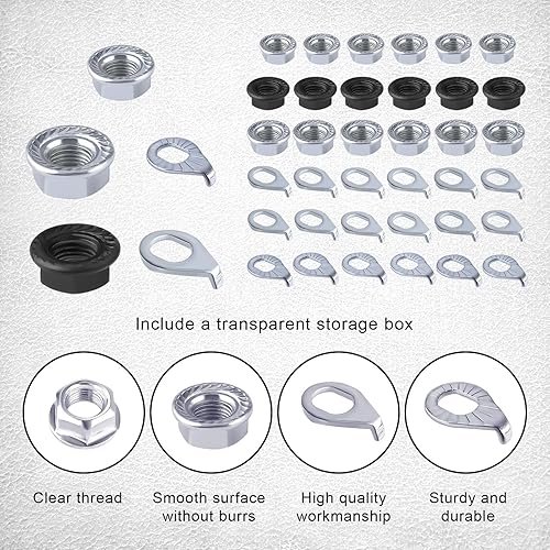 36pz Dadi Flangiati e Rondella di Sicurezza Bici, M8/M9,5/M10 Acciaio al Carbonio Rondella di Sicurezza Bici Dadi per Ruote Bici per ASSE Ruota Anteriore e Posteriore per Mountain Bike