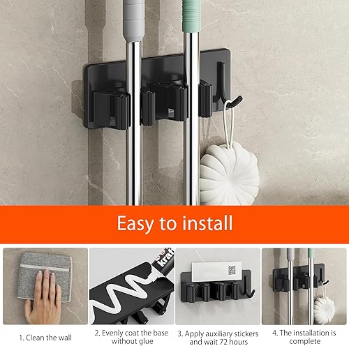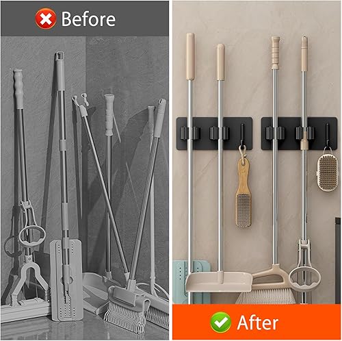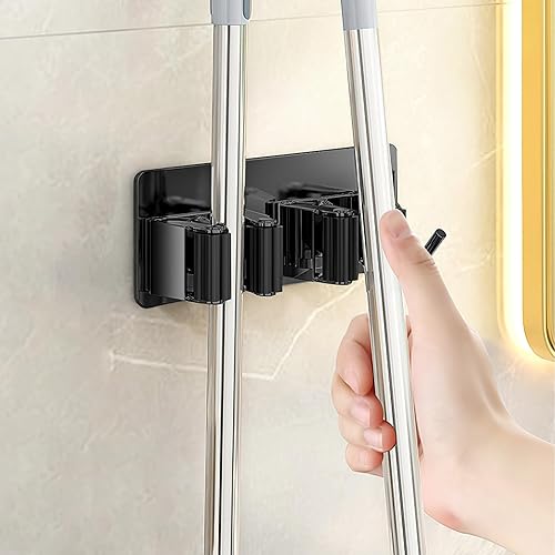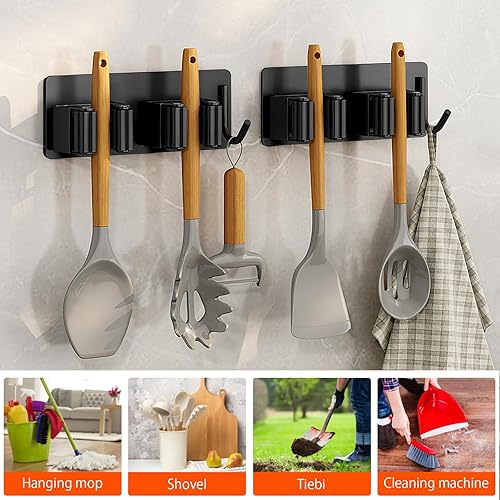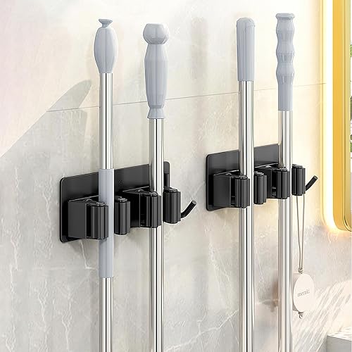 2 Pezzi Porta Scope Parete, Portascope da Muro Adesivo Appendibile Portascope da Muro Appendibile da Giardino per Cucina Autoadesivo Appendi Scope a Muro Per Cucina, Garage, Giardino,Bagno