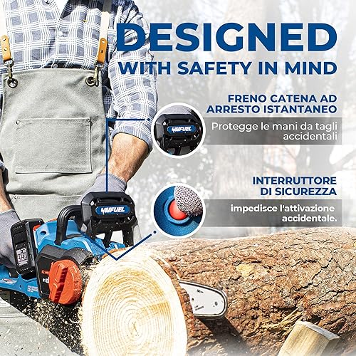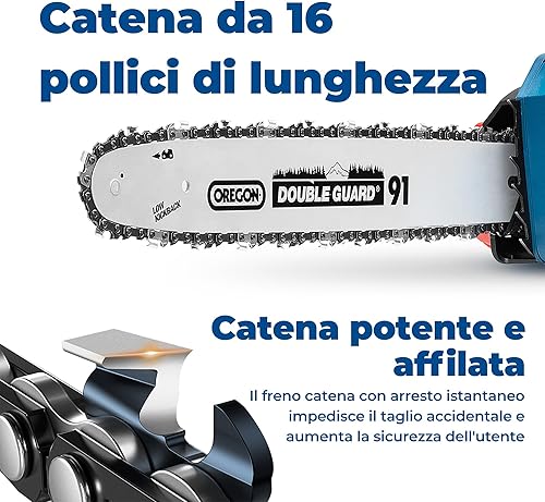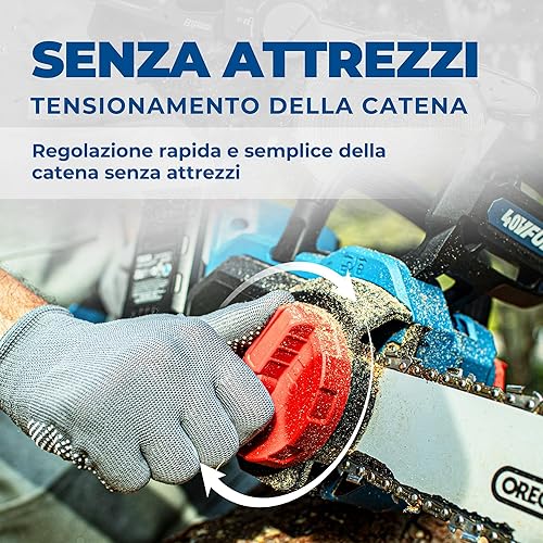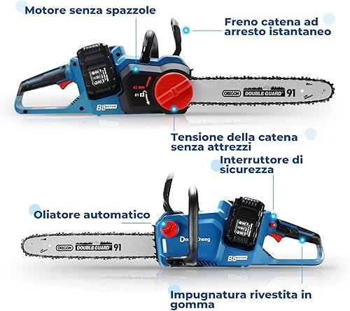DongCheng, motosega a batteria da 40 V, batteria da 38 cm, motore senza spazzole 14 m/s, velocità di taglio, motosega elettrica con batteria da 2 x 4,0 Ah e caricatore