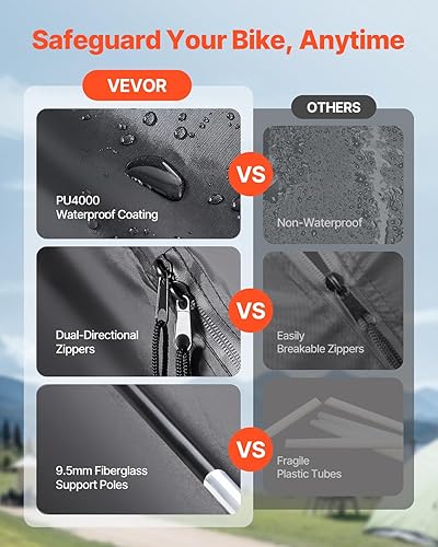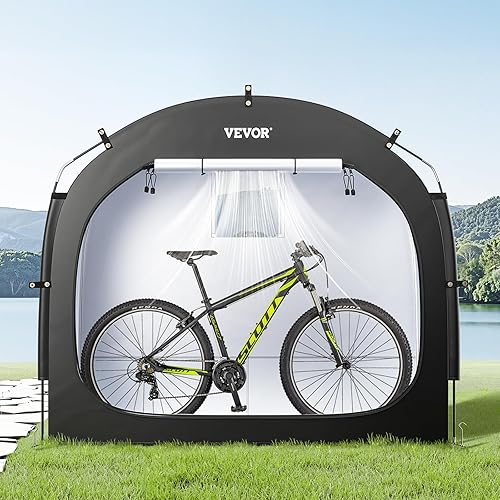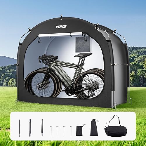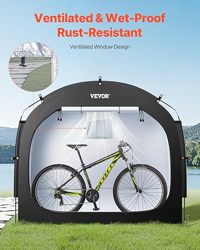 VEVOR Spaziosa Tenda per Riporre le Bici all'Aperto con Finestra Ventilata, Tenda Impermeabile Arco Superiore con Fibra di Vetro e Doppie Cerniere Nero da 3 a 4 Bici 2030 x 1220 x 1690 mm