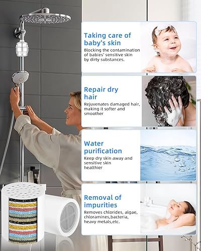 2 Pack Filtro Doccia di Ricambio Cartuccia 36 Fasi,Universale Filtro Anticalcare Doccia Cartuccia per Doccia Alto Rendimento,Rimuove i Metalli Pesanti Calcare Altri Depositi,Una Pelle Migliore