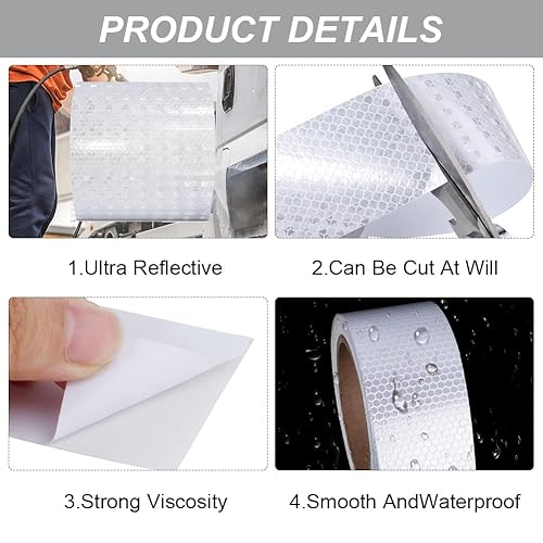 Nastro Catarifrangente Adesivo 10M X 5cm, Nastro Riflettente Adesivo, Impermeabile Strisce Catarifrangenti Adesive, Strisce Catarifrangenti Adesive, per Veicoli, Caschi, Abbigliamento (Bianco)