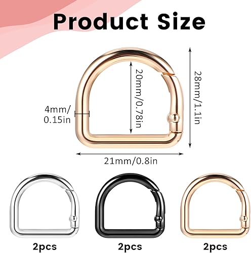 Confezione da 6 Moschettoni ad Anello a D, Portachiavi in Metallo Anelli a D Gancio a Molla per Borsa a Tracolla Portachiavi Hardware Portachiavi Clip Accessori Collare per Animali Domestici